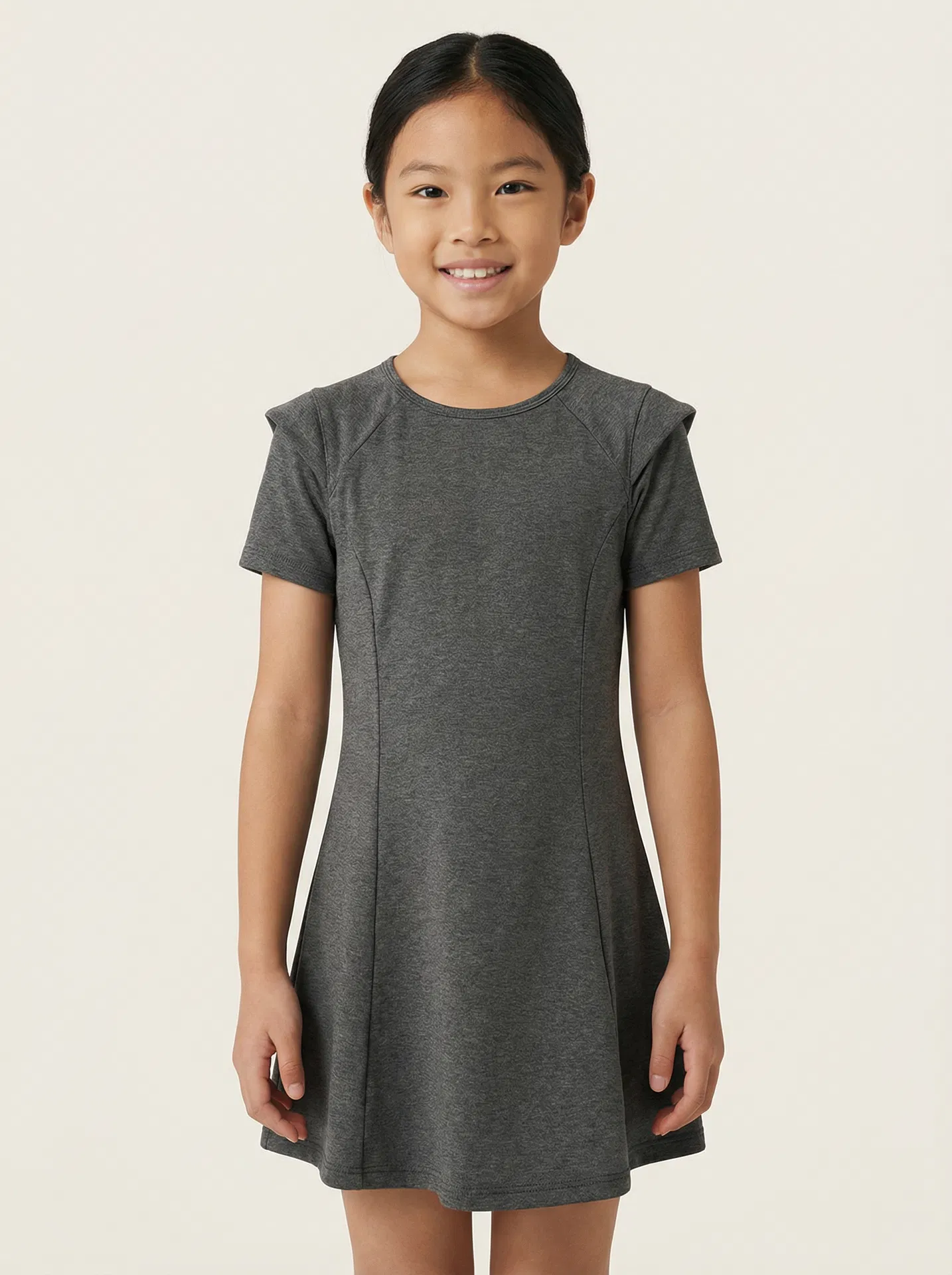 Raglan sleeves create a sculptural shoulder line — a dress that moves with the body and looks like it was made for movement.